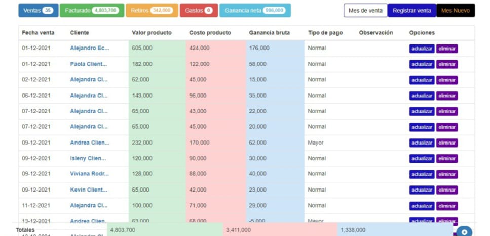Registro de ventas
