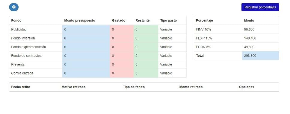 Registra fondos para inversión, imprevisto etc.