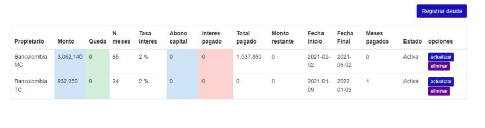 Registra y controla tus deudas.